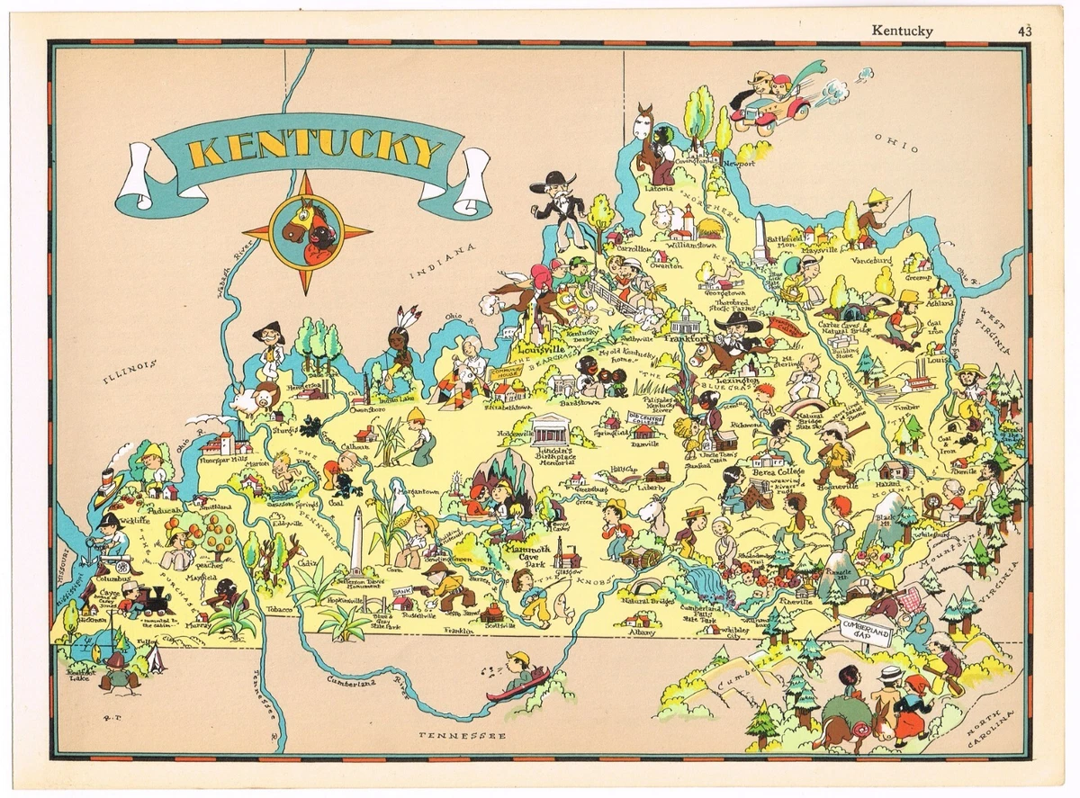 ORIGINAL GAY GEOGRAPHY RUTH TAYLOR KENTUCKY DERBY MAP PICTORIAL